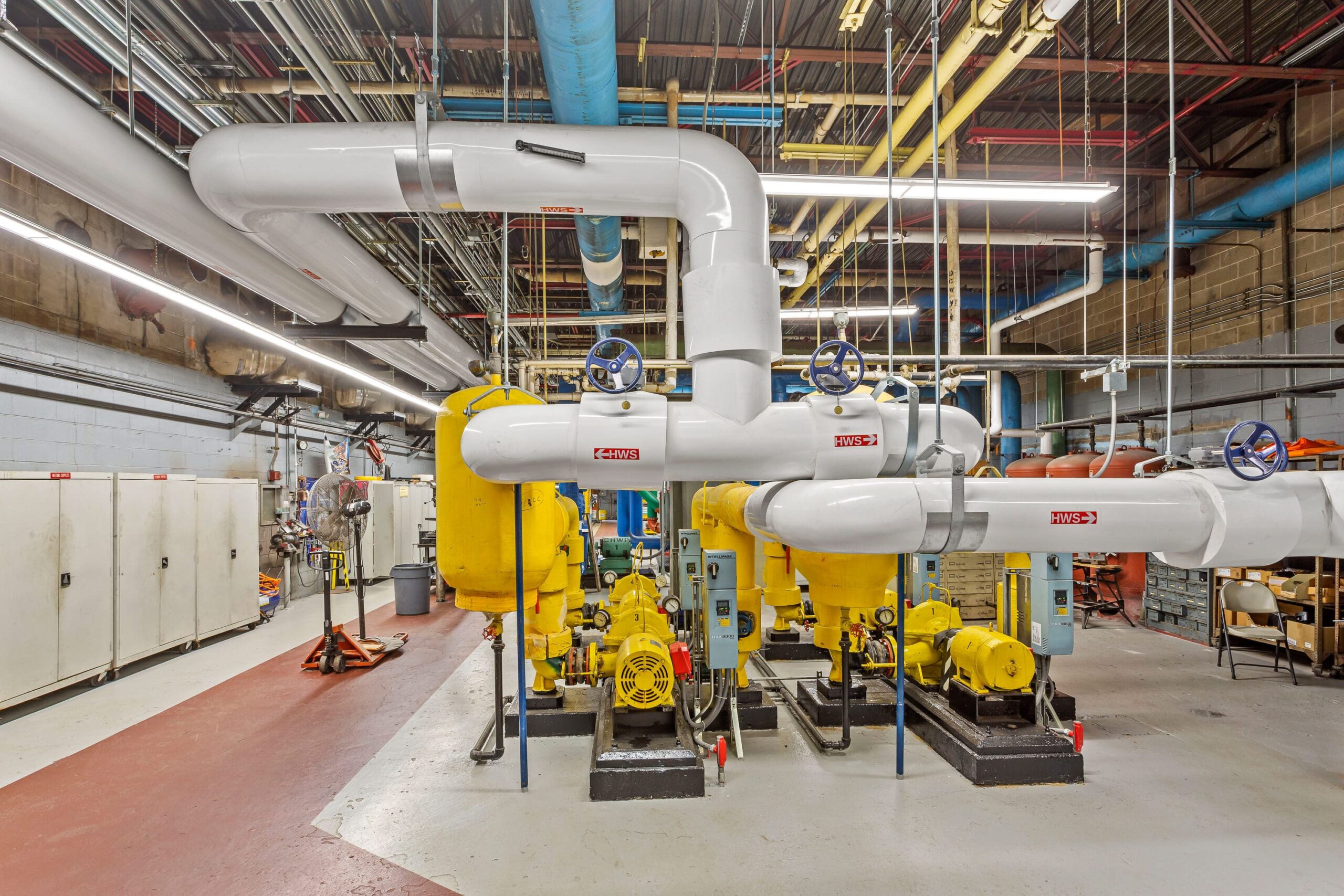 Our team implemented a campus-wide retrofit, including replacement of failed cooling towers, decommissioning of steam boilers, and installation of modular condensing hot water boilers. The project converted 247 constant volume reheat boxes to VAV boxes, installed VFDs on AHUs, and integrated a new open-source BAS platform. Lighting was fully upgraded with LEDs and advanced controls. Additional work included asbestos abatement, UPS upgrades in the data center and 44 server closets, and extensive deferred maintenance resolution — at no cost to the client, as it was supported by $2.6MM in secured utility incentives.